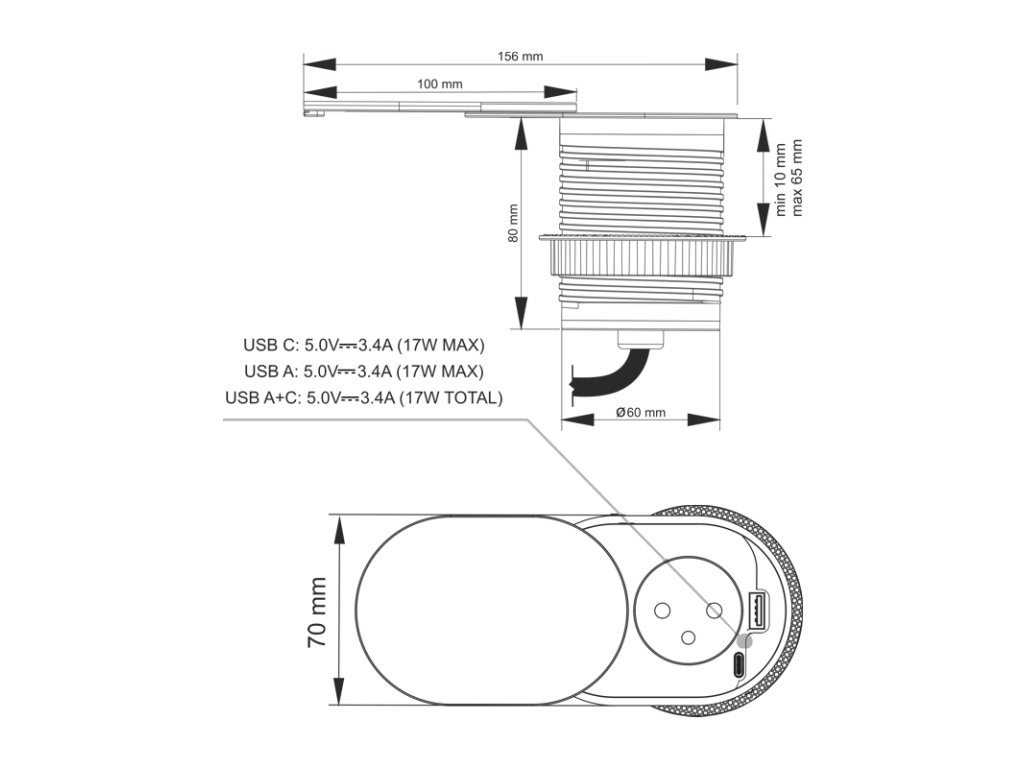 SLIDE BOX je moderní nábytková zásuvka s jedním 230V AC vstupem a USB A+C portem, ideální pro jakýkoli typ povrchu. Produkt je navržen pro instalaci do kanceláří, kuchyně a konferenční místnosti. Díky své malé velikosti, možnosti zapuštění do pracovní desky a estetické okenici nezabírá objímka příliš mnoho místa.