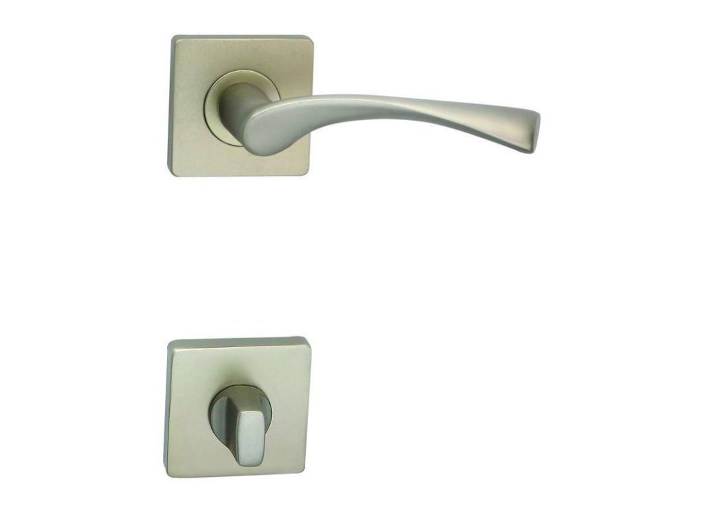 Economy nerezová ocel Kompletní set včetně spodních zámkových rozet plastové podrozety kování s vratnou pružinou hranatá rozeta