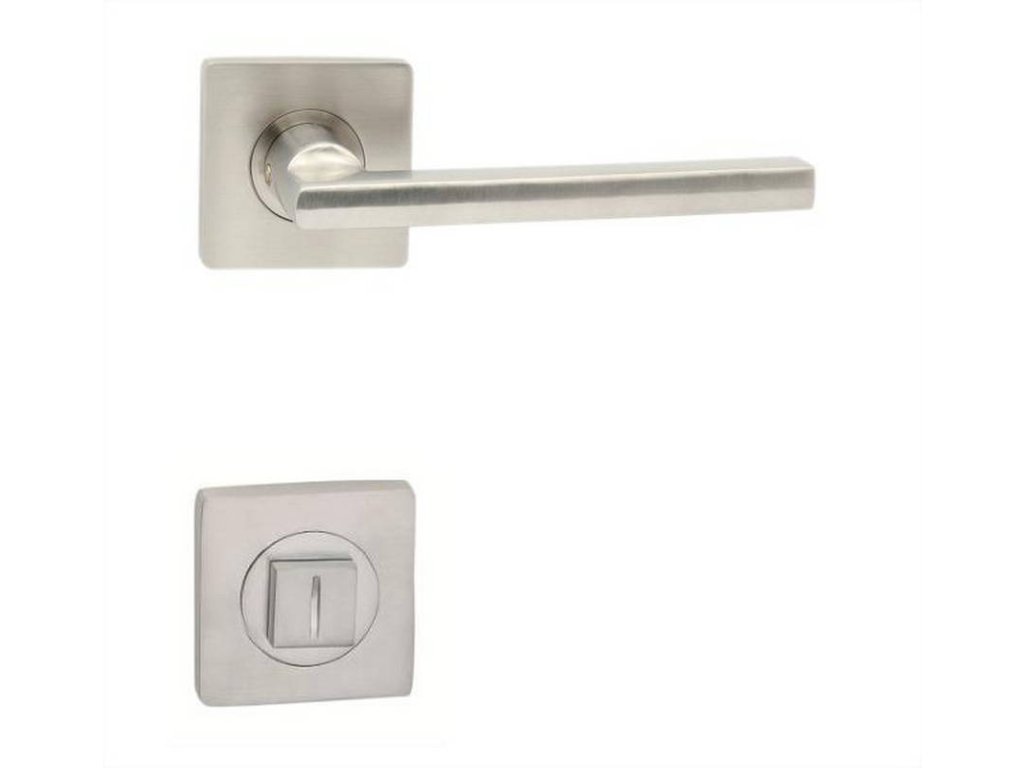 Economy nerezová ocel Kompletní set včetně spodních zámkových rozet plastové podrozety kování s vratnou pružinou hranatá rozeta