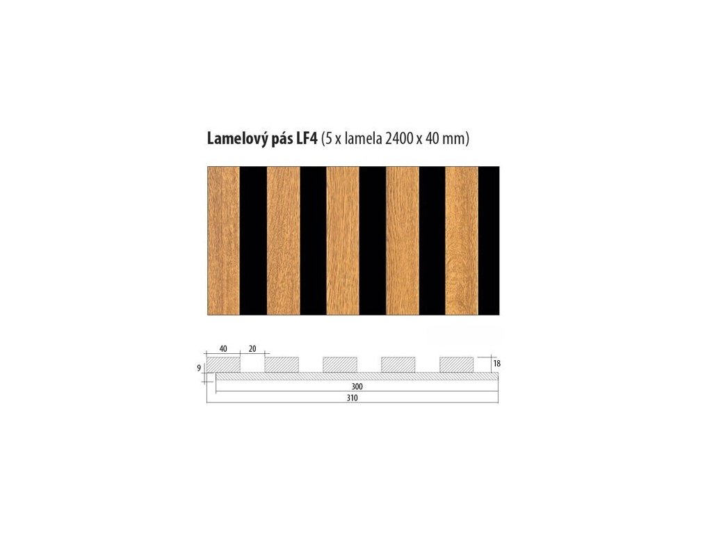 Celkový rozměr lamelového pásu 2400 x 350 x 21 mm.
