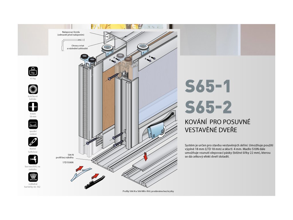 Systém je určen pro stavbu vestavěných skříní. Umožňuje použití výplně 18 mm (LTD 18 mm) a skla tl. 4 mm. Úchytkový profil S10 a S11 se prodává včetně krycího profilu, kterým se po montáži zakryjí spojovací šrouby rámu a seřizovací šroub kování. Madlo S10 dále umožňuje vsunutí olepovací pásky (běžné šířky 22 mm), kterou se dá celkový efekt dveří doladit.